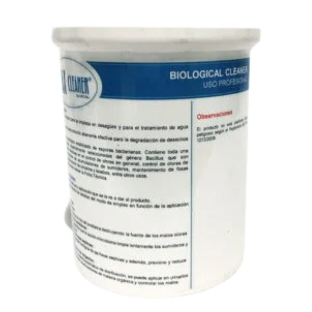 Novedosa solución altamente efectiva para la degradación de desechos orgánicos. Es un sistema biológico estabilizado de esporas bacterianas. Contiene toda una serie de cepas especialmente seleccionadas del género Bacillus que son extremadamente efectivas en el control de olores en general, control de olores de animales y desodorización de urinarios y lavabos. Es un producto totalmente compatible con el medio ambiente: no es patogénico ni corrosivo.  No es un producto peligroso. No es tóxico ni corrosivo. Totalmente compatible con el medio ambiente. No contiene disolventes ni productos químicos corrosivos o peligrosos. Este producto es único por su natural poder digestor de toda una serie de cepas bacterianas especialmente seleccionadas.