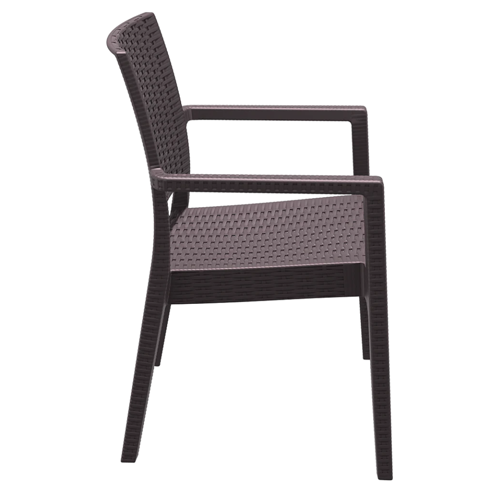 La Ibiza silla con brazo es la solución perfecta para comensales al aire libre.