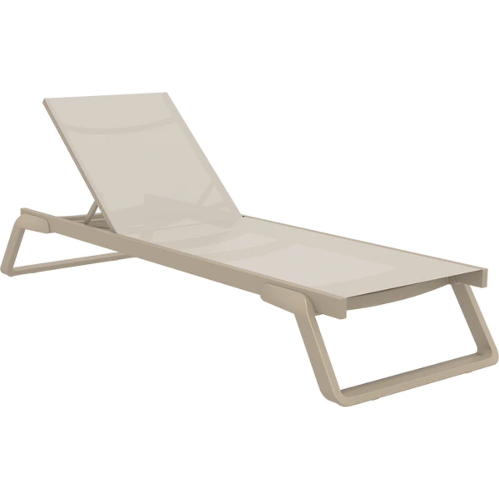 Fabricada en aluminio, resina y fibra de vidrio, esta tumbona ofrece excepcional durabilidad y resistencia. El asiento de malla de textilina Batyline Serge Ferrari garantiza ventilación, haciendo que cada momento de descanso sea refrescante.